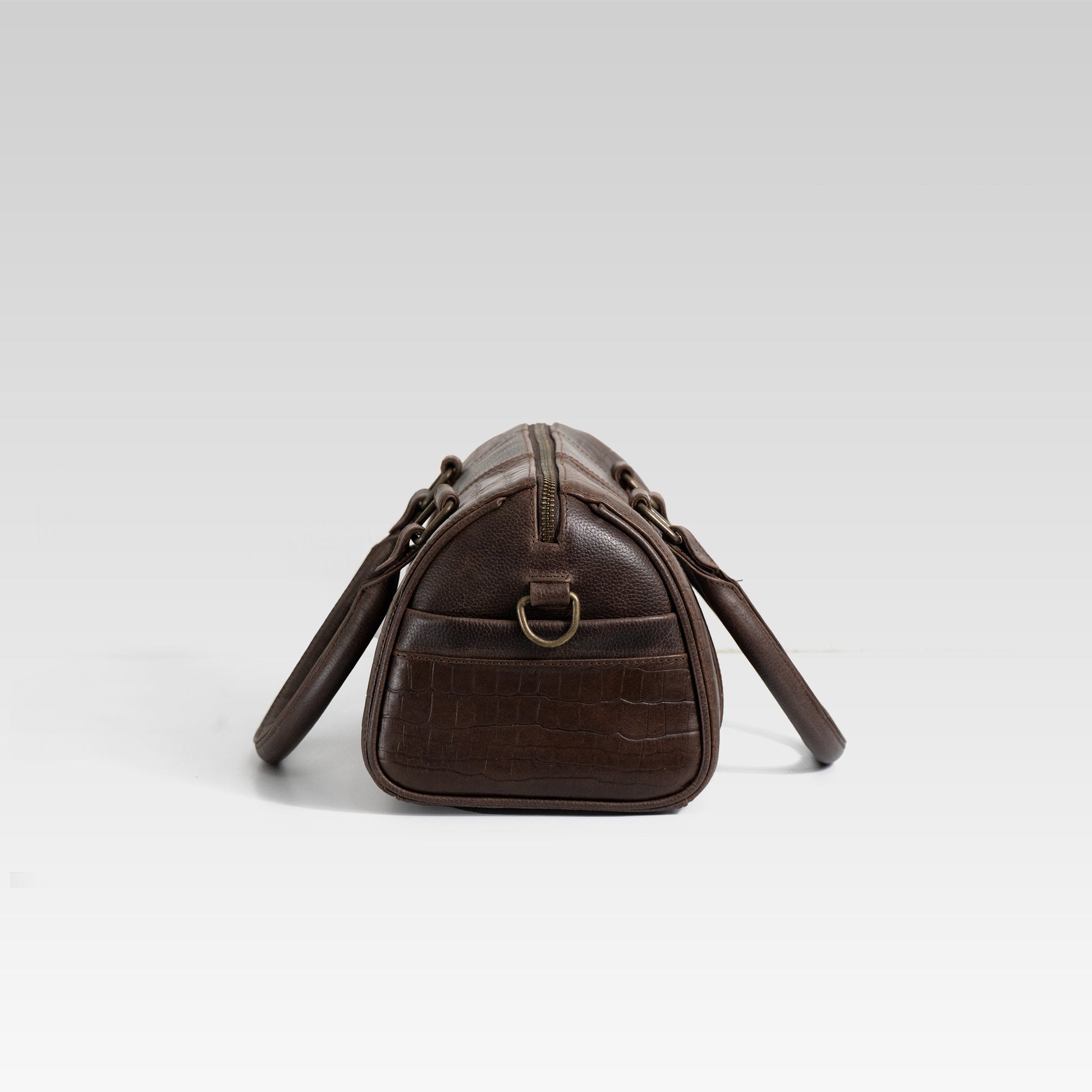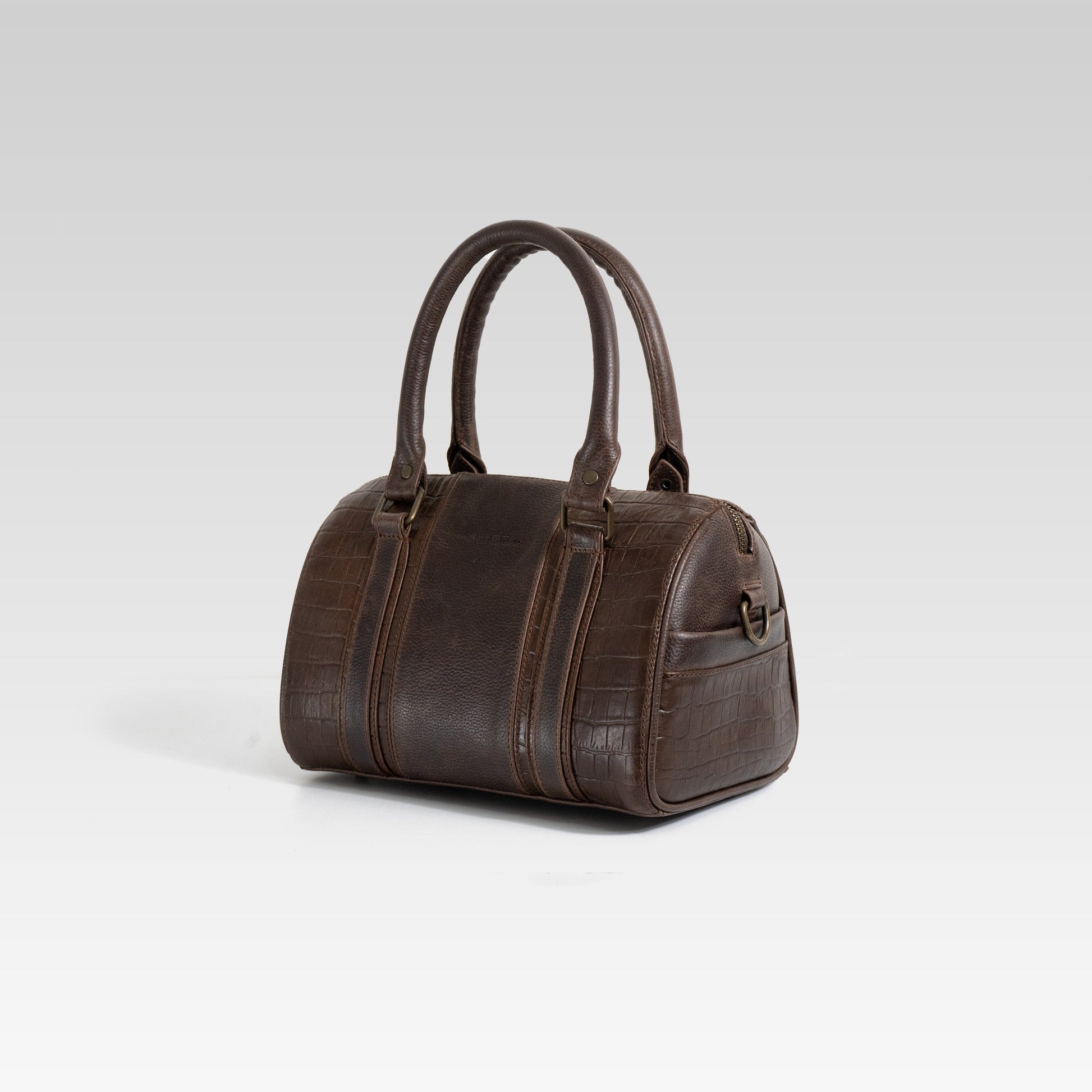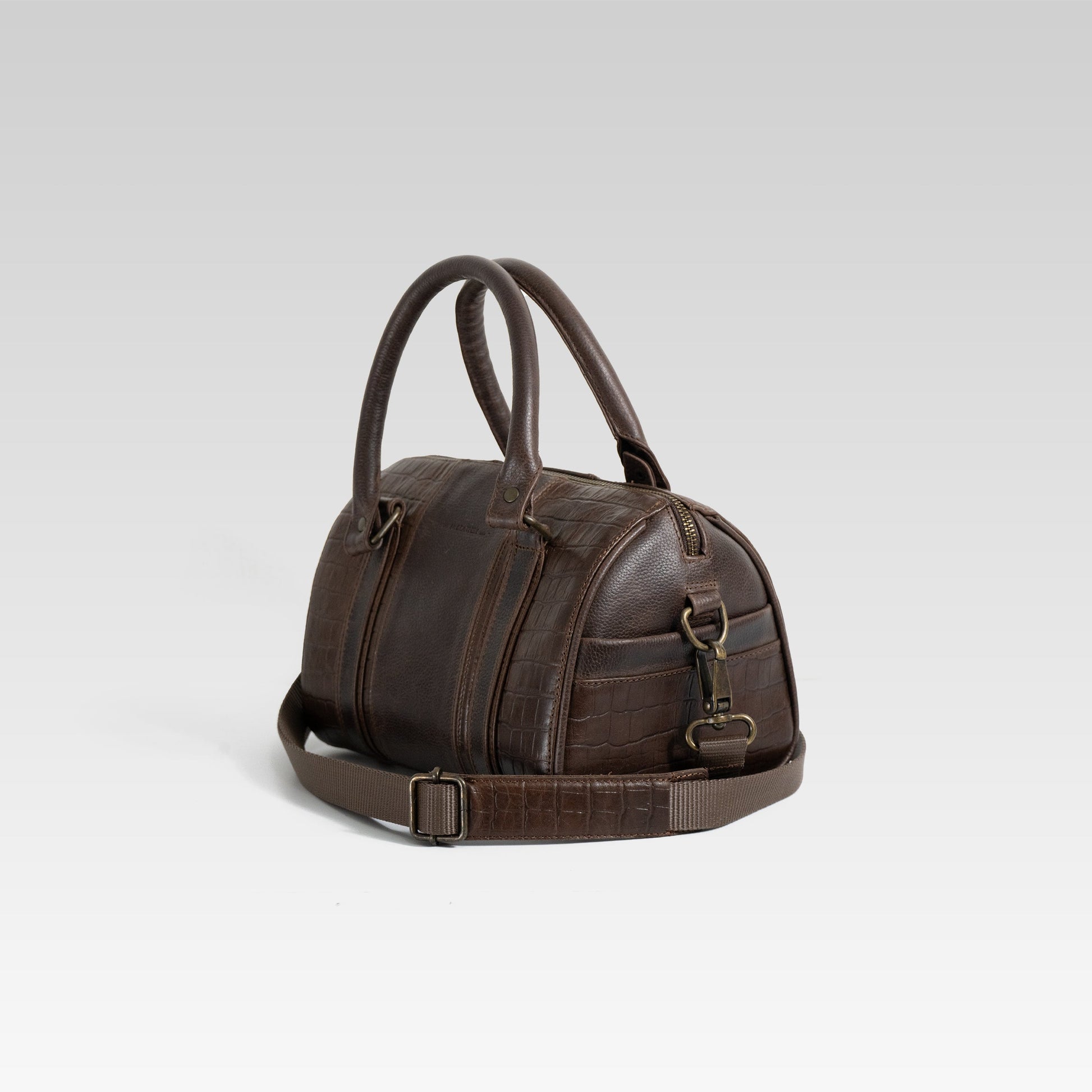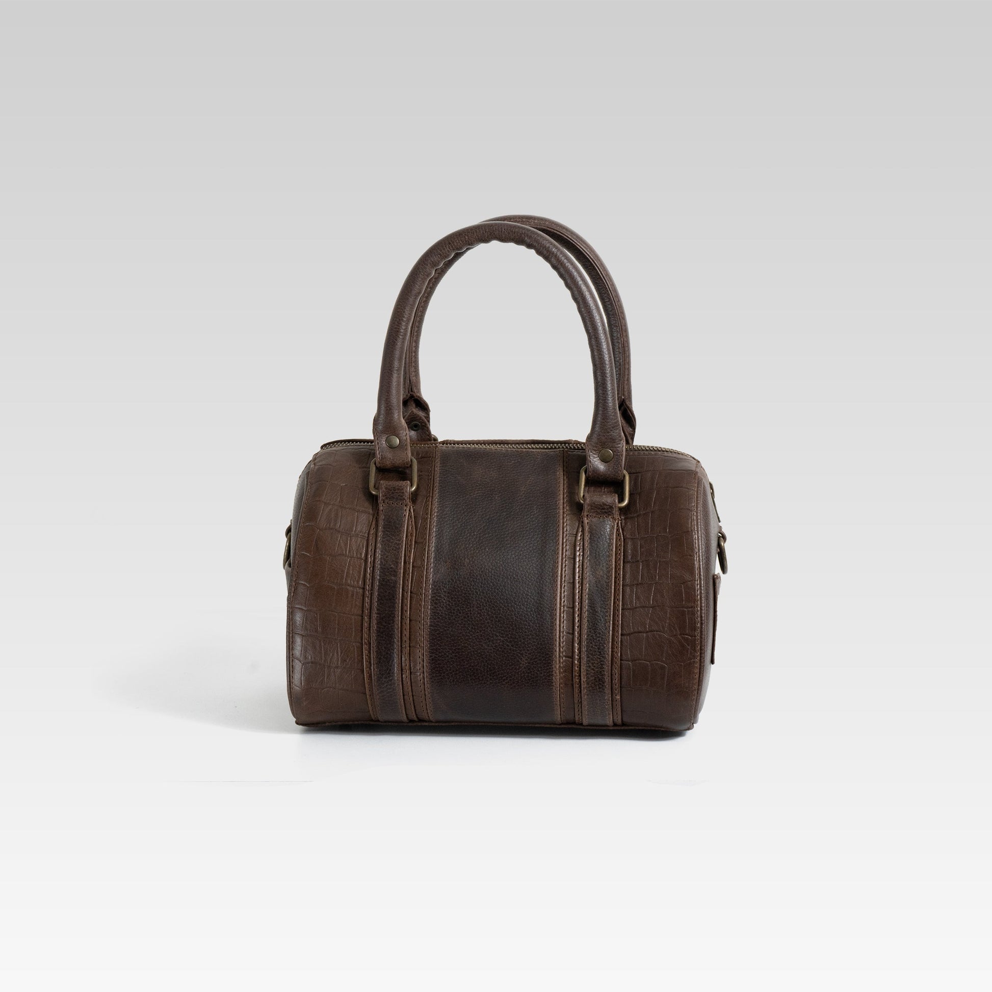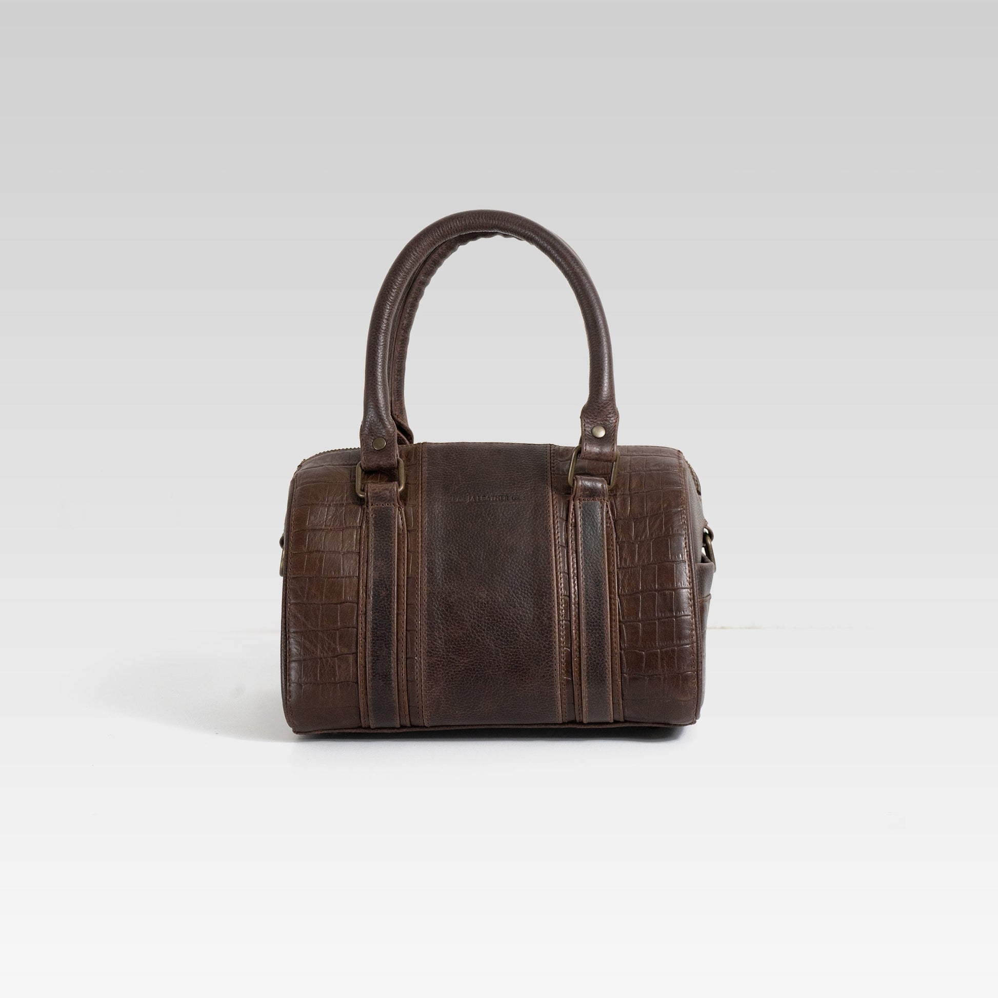 MINI B001 – Piel de Res Genuina con Combinación de Piel de res grabado de Cocodrilo Color Cafe.